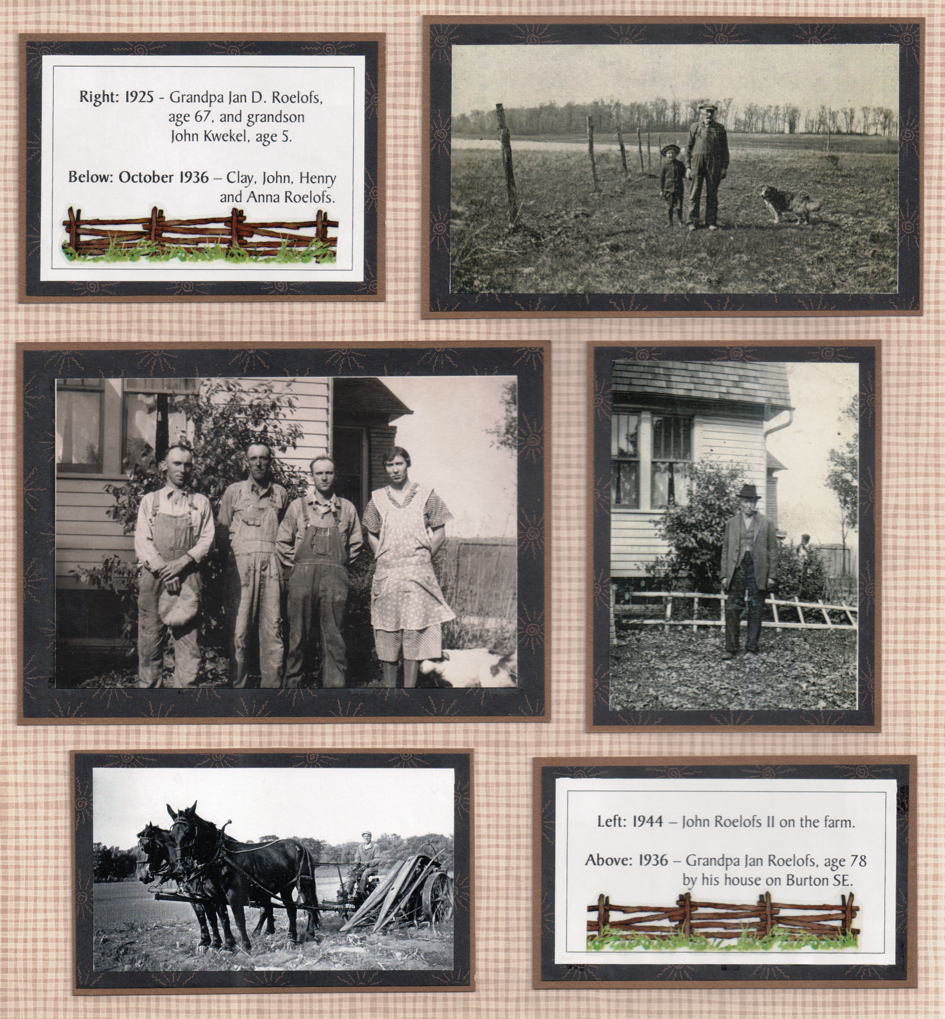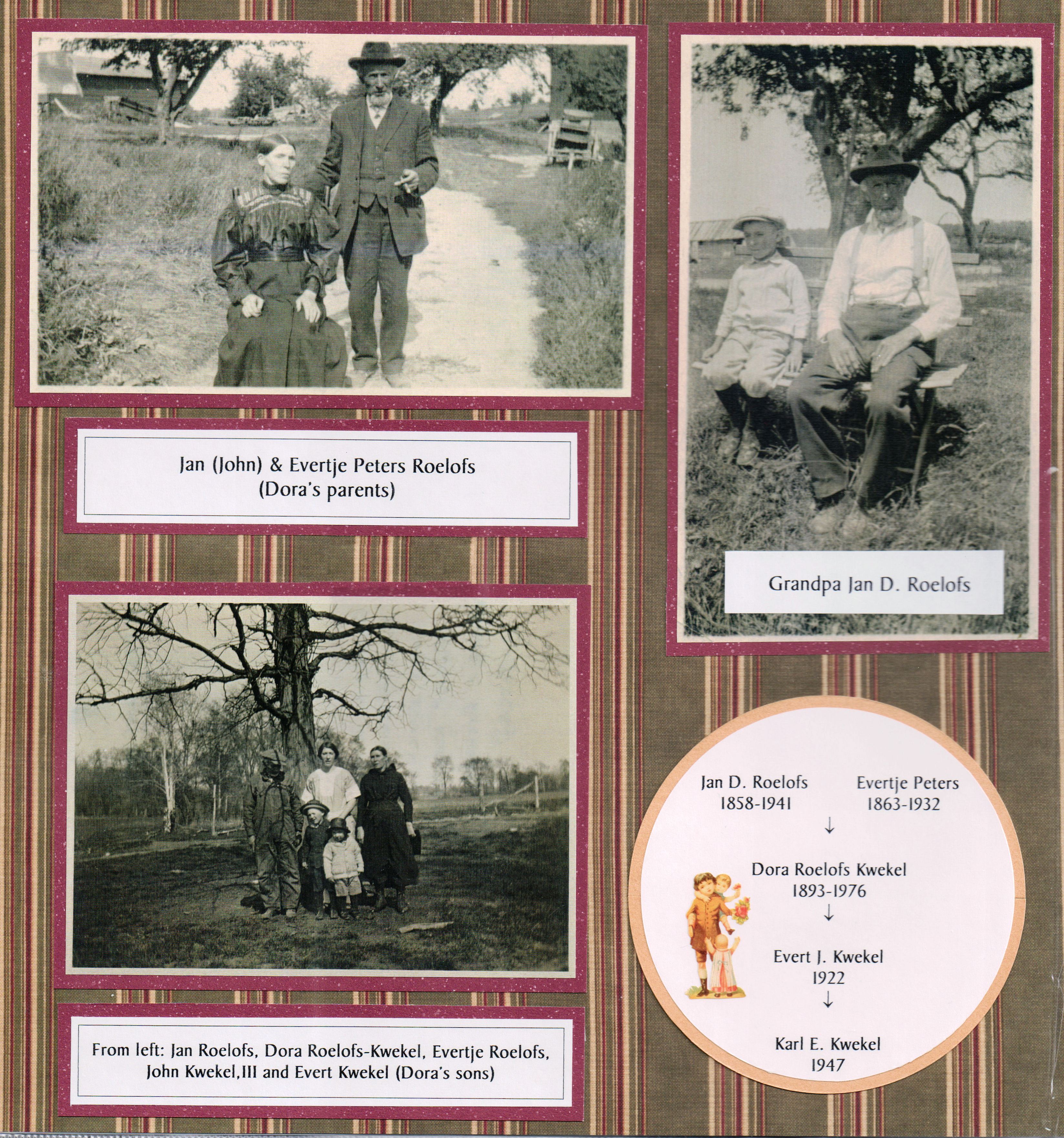 Click on the links below to view pictures and stories: Roelofse Physical Characteristics from the Ship Niew Amsterdam Henry, Evertje, Clayton, John Dirk Jr, and Cora Lock* Ralph Roelofs and Anna Welmerink, Wedding Picture, September 10, 1910 Anna (Welmerink) Roelofs, Age 17*** Cornelius, Dora (Roelofs), Everet, and John Kwekel* John, Evert, and Dora (Roelofs) Kwekel* At Dora (Roelofs) Kwekel's Place*** Anna, Eva, Ralph Sr, Harry, and Ralph Jr*** Great Grandpa Roelofs and the Kwekel Family* John Dick and Ralph Roelofs Sr.*** Anna Roelofs Wedding and John Roelofs Wedding* Evert and Dorothy (Kwekel) Buiter* John and Eva (Roelofs) Westerling*** Lucy (Feminis) and Ralph Roelofs Jr. Ralph Roelofs Jr with Raisins in about 1927 Enjoy! * From Karl Kwekel ** From Evie Nakken *** From Cookie Vanderleest **** From Sarah Heth